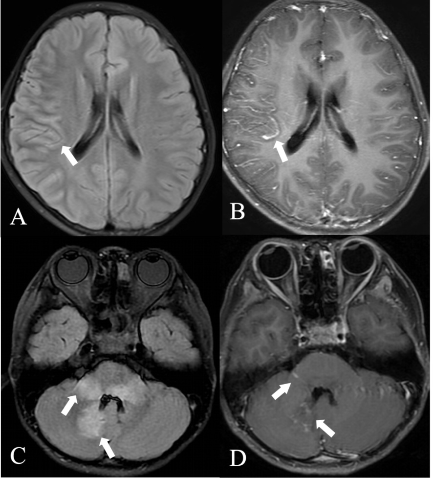 Elsbernd, P., Cacciaguerra, L., Krecke, K.N., Chen, J.J., Gritsch, D., Lopez-Chiriboga, A.S., et al. (2023) Cerebral Enhancement in MOG Antibody-Associated Disease. Journal of Neurology, Neurosurgery & Psychiatry, 95, 14-18. [Google Scholar] [CrossRef] [PubMed]