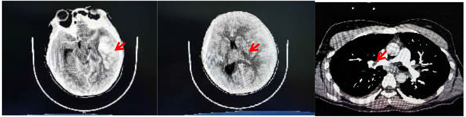 Figure 1. Cerebral hemorrhage, cerebral herniation, pulmonary embolism