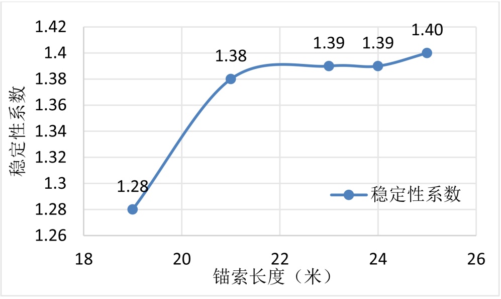 优化后长度14 m,稳定系数从1.30升至1.36,锚索用量减少6.7%;