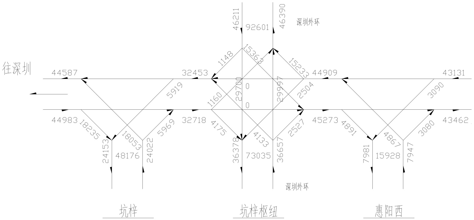 图1. 坑梓枢纽~坑梓互通预测交通量