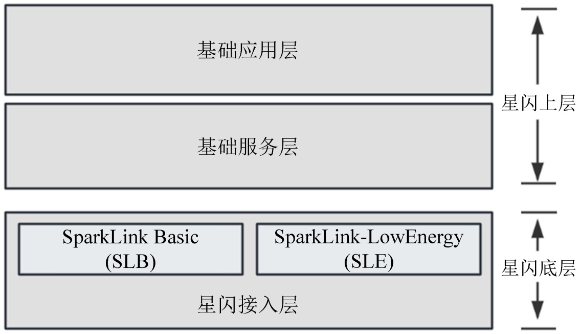 为适应不同应用场景的需求,星闪在接入层设计了由基础模式(SparkLink Basic, SLB)和低功耗模式(SparkLink Low Energy, SLE) [4]组成的双模体系,如图2所示。SLB模式采用宽带传输,支持更高阶的调制编码方案,主要面向车载信息娱乐、高清投屏等高速率、低时延业务。SLE模式则针对物联网传感器、可穿戴设备等场景进行了功耗优化,可在保证稳定连接的同时,实现与蓝牙相近的能耗水平。这两种模式共享统一的协议栈,使得星闪能够灵活覆盖从高速率到低功耗的多种应用领域。