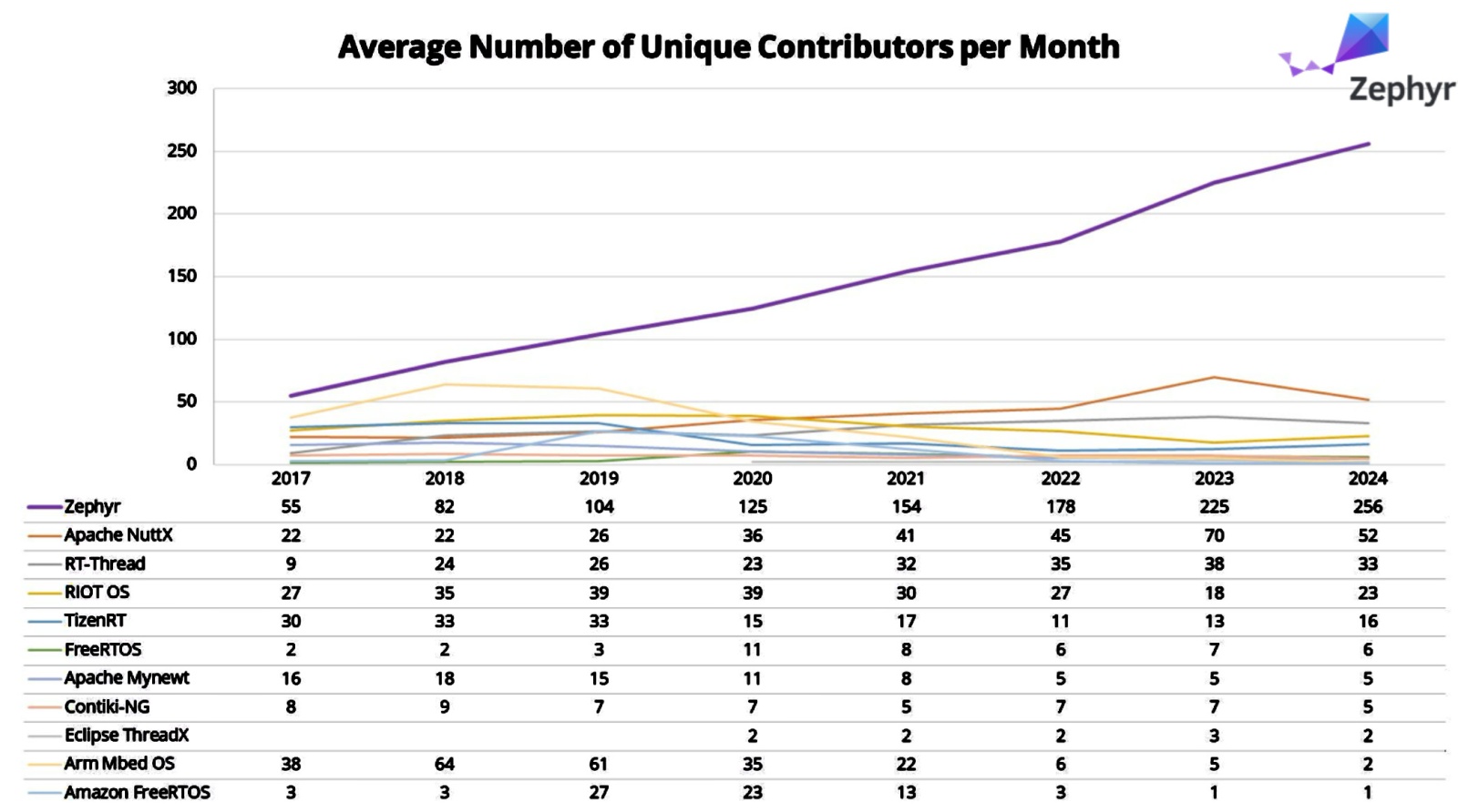 Figure 1. The fast growth of Zephyr contributors