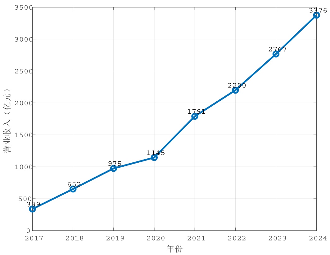 图1. 2017~2024年美团营业收入变化