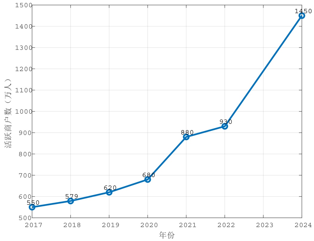 图2. 2017~2024年美团活跃商户数变化