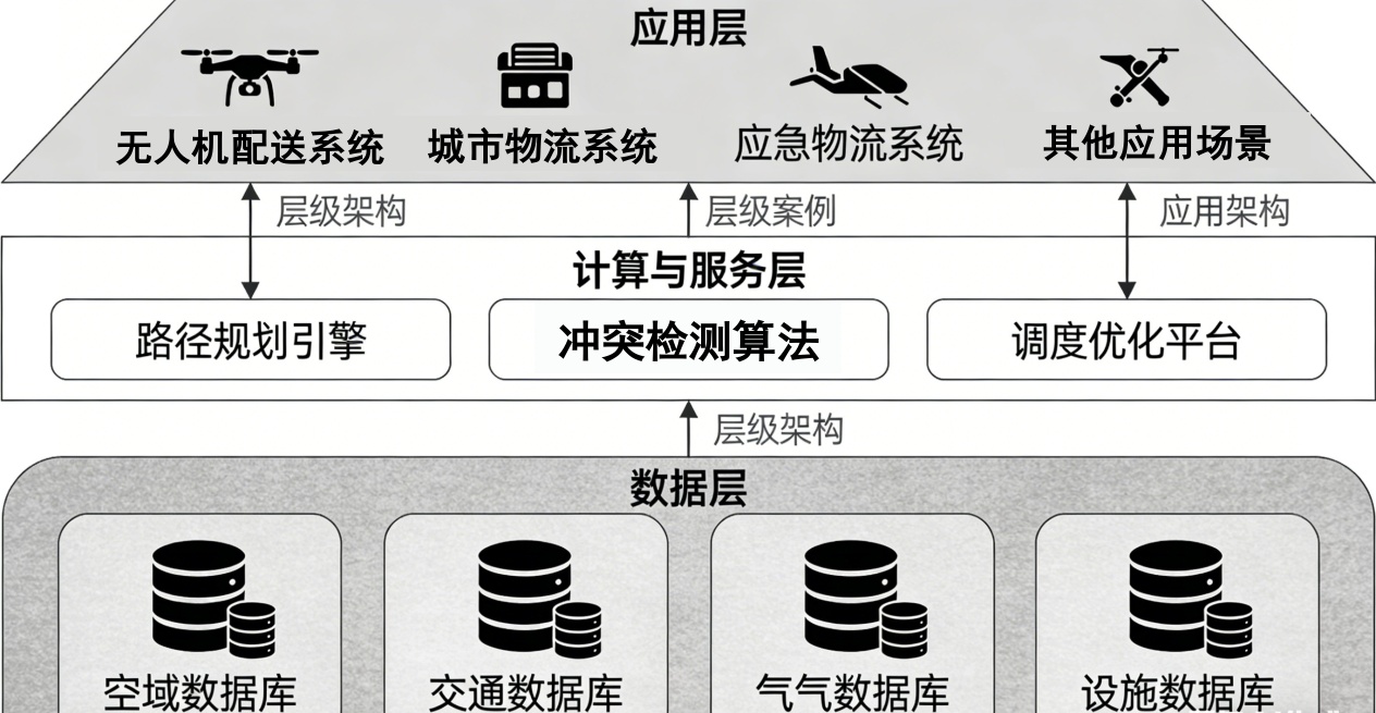此外,空域层还需与地面系统保持高频信息交互,包括无人机位置、剩余电量、载重状态等关键运行参数,为协同调度层的决策提供基础数据支撑。
