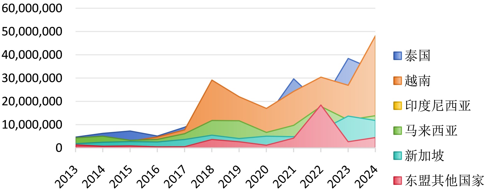 Figure 1. China’s export value of industrial robots to ASEAN from 2013 to 2024 (USD)