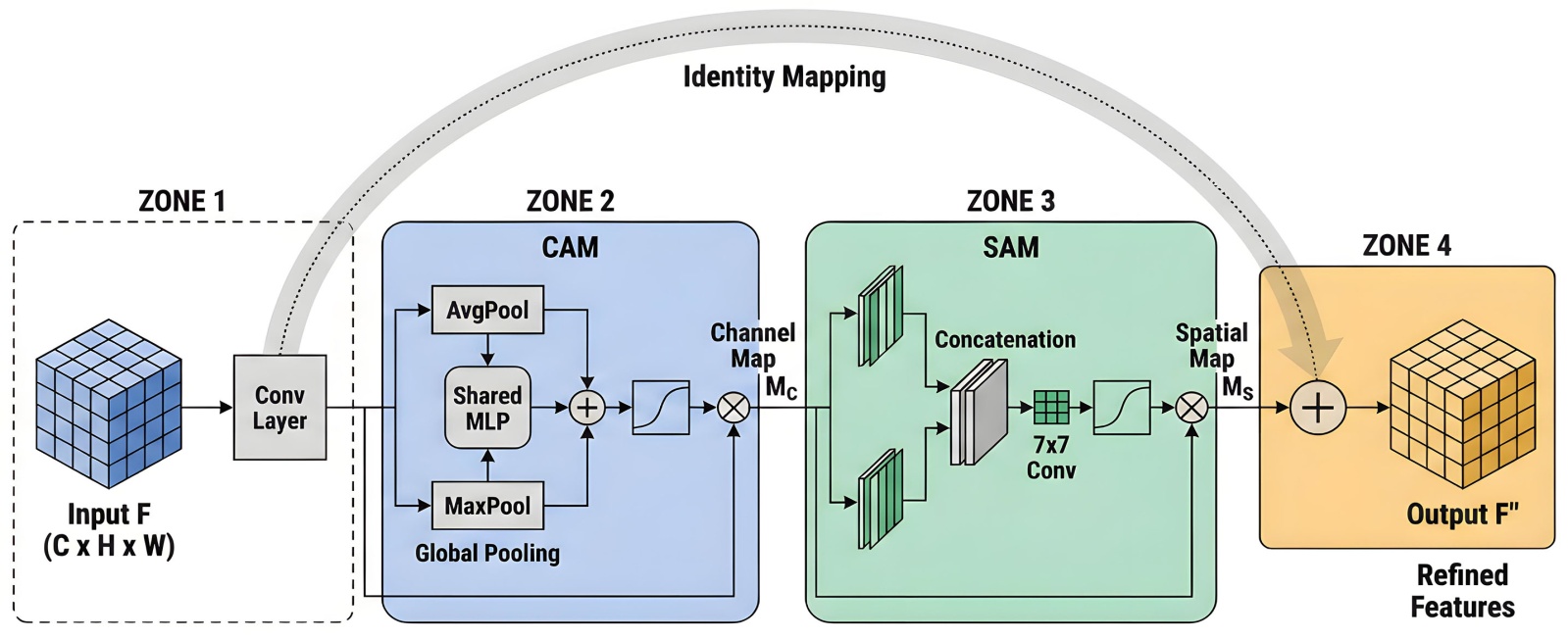 Figure 2. Residual block structure with combined CBAM