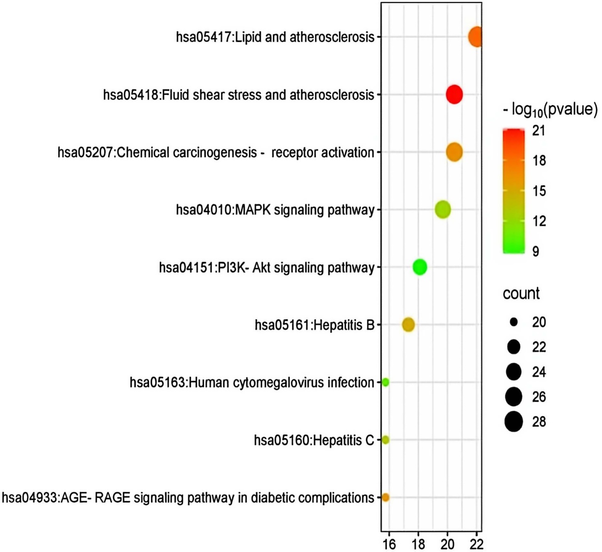 Figure 5. KEGG enrichment analysis of targets for Hedyotis diffusa in the treatment of esophageal squamous cell carcinoma