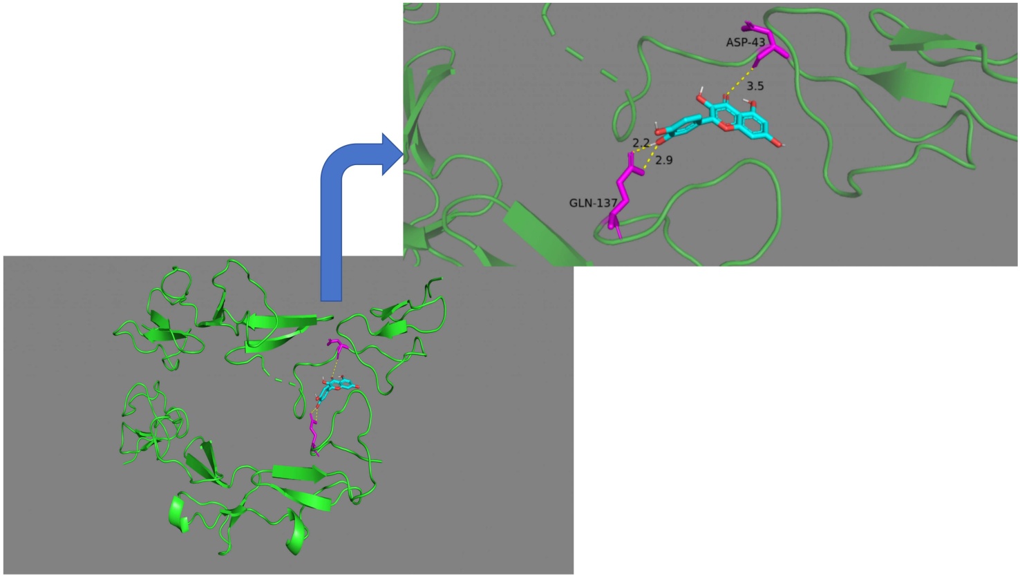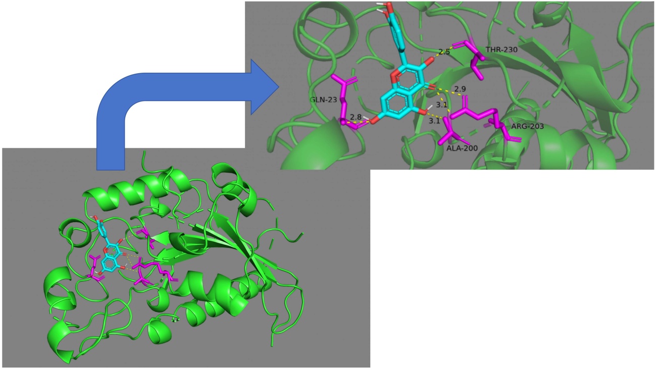 Figure 6. Binding of quercetin to the 2bo2 protein