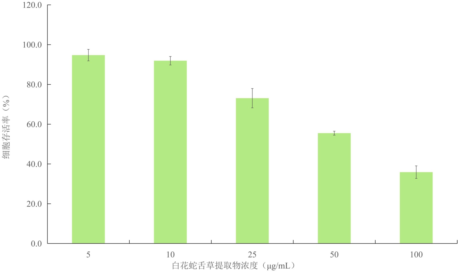 图10. 白花蛇舌草提取物浓度对食管鳞癌细胞存活率的影响