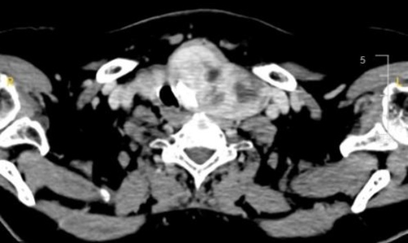 Peng, C., Yang, C., Yao, J., Xu, J., Wu, J., Zhao, J., et al. (2022) Multimodal Sonographic Appearance and Survival Outcomes of 69 Cases of Primary Thyroid Lymphoma over 10 Years. Journal of Ultrasound in Medicine, 41, 3031-3040. [Google Scholar] [CrossRef] [PubMed]
