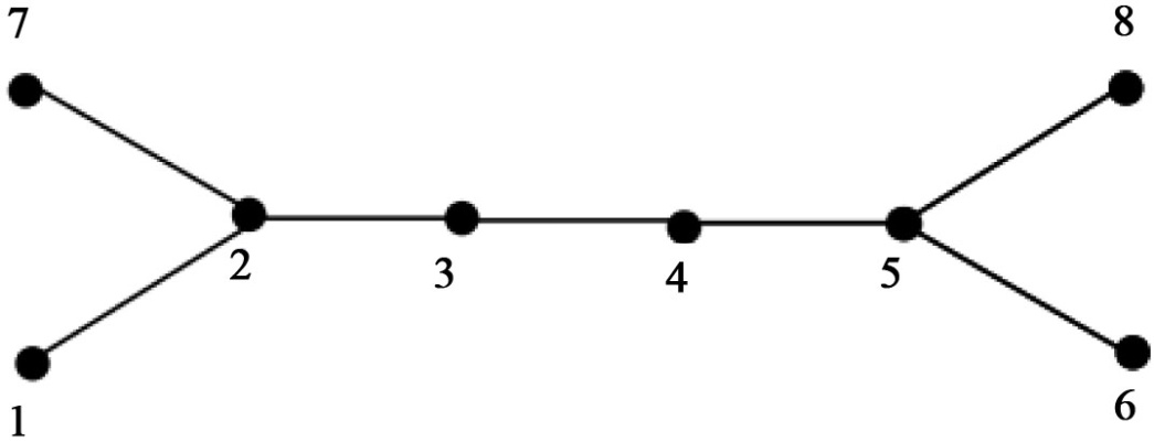 图3. 8个点的谱半径为2的树