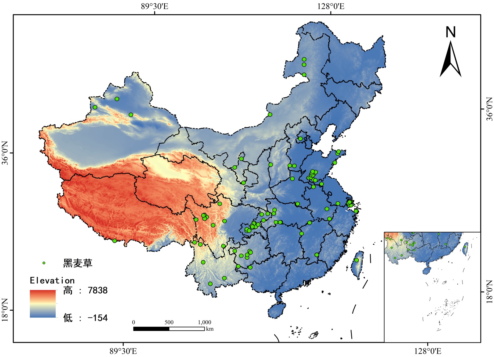 黑麦草(Lolium perenne L.)是一种多年生禾本科黑麦草属植物,广泛分布于全球温带地区[1],因其萌发生长快、营养价值高、再生与分蘖能力强而被广泛引种用作牧草、草坪草及水土保持植物[2]。由于我国农业牧业不断发展[3]、城市绿化和生态修复工程[4]广泛推进,黑麦草在许多地区大面积种植[5],随之而来的是逸生记录不断增加。由于黑麦草具有强大的环境适应能力和竞争能力,所以其生态系统中更容易生存并且扩散,对本地物种组成、群落结构和生态系统的稳定造成一定不良影响,也可能流入农田中成为恶性杂草。所以系统评估黑麦草在我国的潜在适生范围、影响因素及迁移方向,对入侵性物种风险预警和资源合理利用有重要意义。