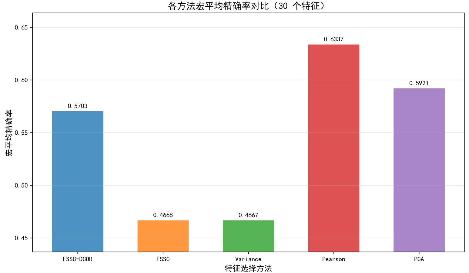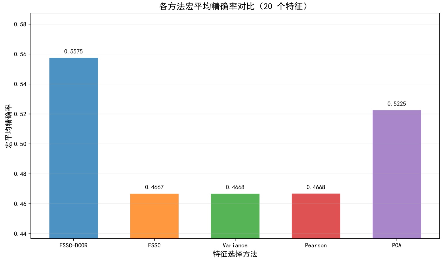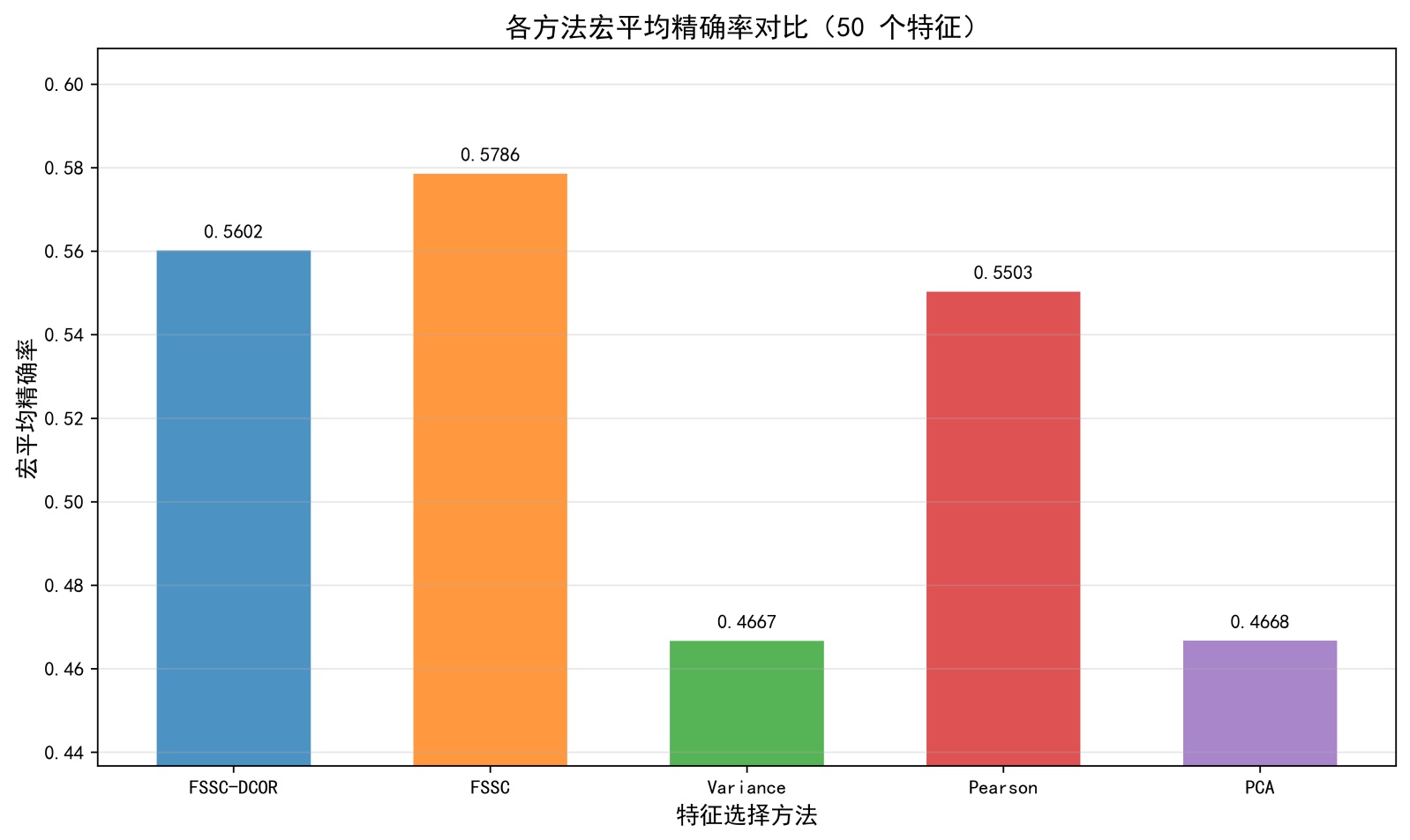 图4. 固定特征数量下宏平均精确率柱状图表现