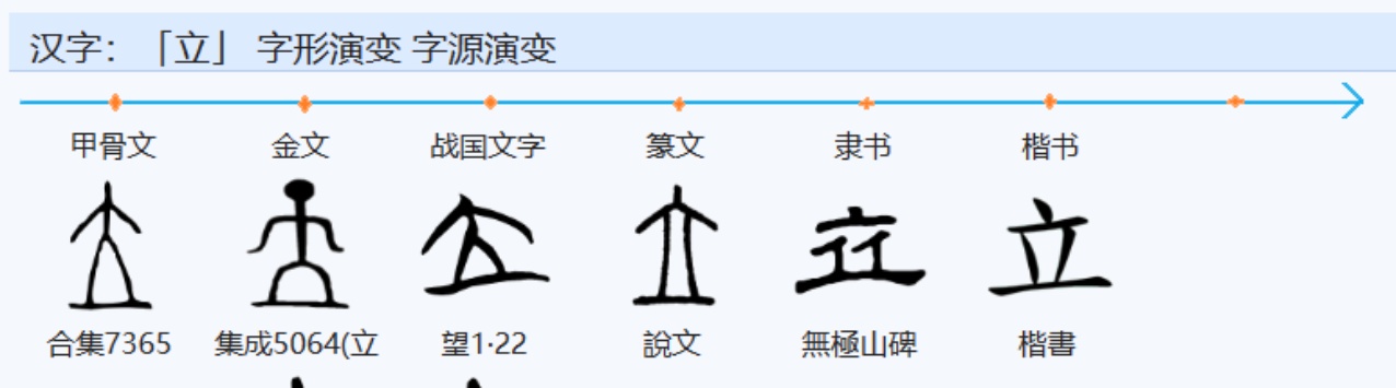 Figure 2. The evolution of the glyph and etymology of the Chinese character “立” (lì, meaning “stand”)