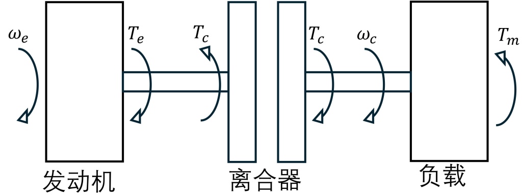 离合器的接合过程可分为接合与分离两种状态。在接合状态下,离合器主动部分与从动部分完全接合时,此时Te = Tc,实现动力传递;在分离状态下,离合器主动部分与从动部分完全分离时,此时Tc = 0,实现动力中断。