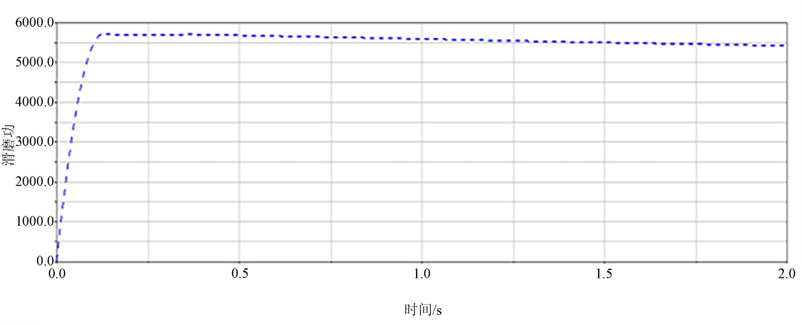 0.15 s后,从动件与主动件已经达到相同转速,滑摩功仿真曲线稳定,滑摩功的数值不再变化,数值保持在约5800左右,不再增长,此阶段表明滑摩过程已经完全结束。