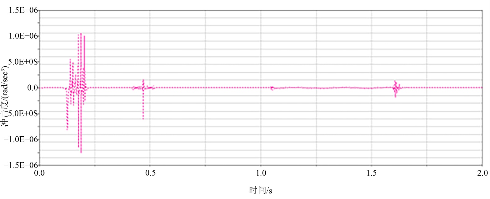 从动盘冲击度仿真结果如图10所示。图10展示了在一次离合器接合过程中,冲击度的动态变化分为两个截然不同的阶段: