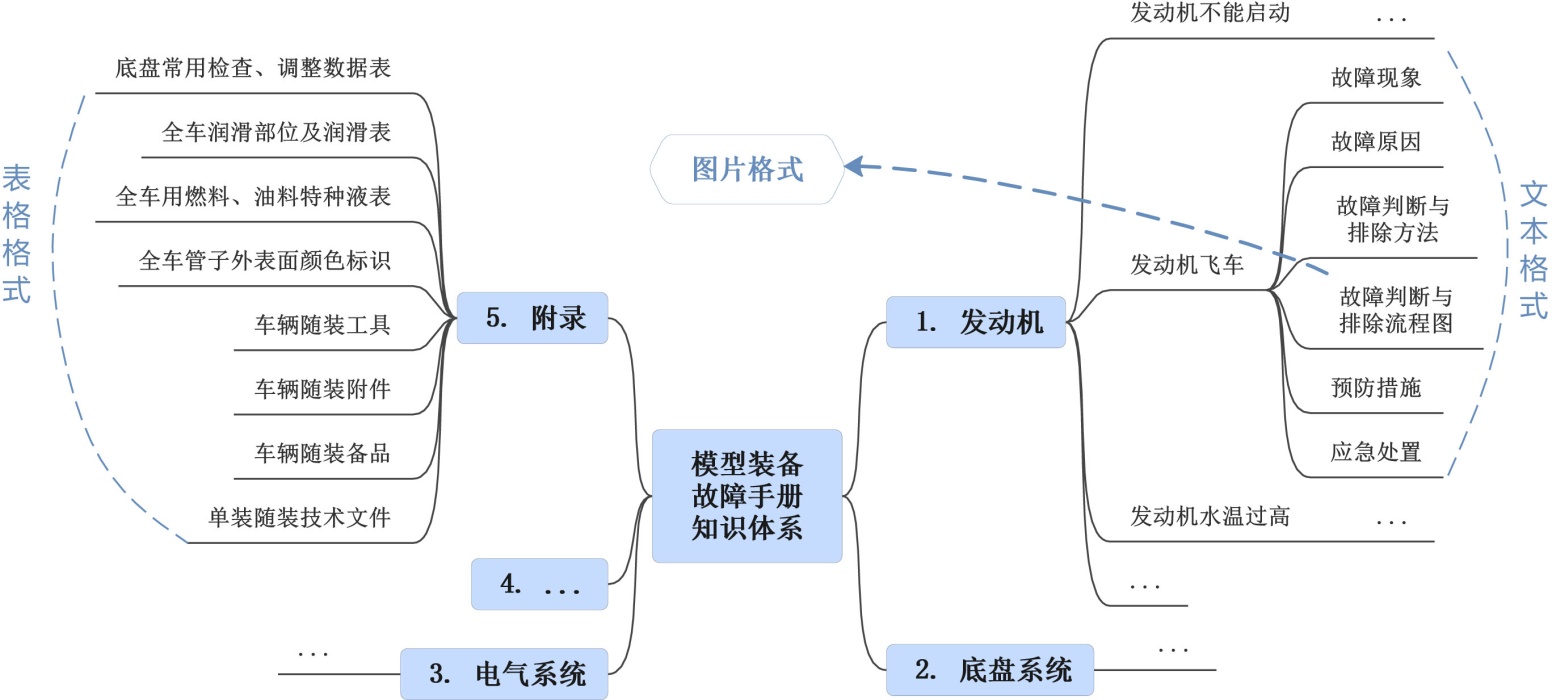 装备故障手册是装备技术资料体系中非常重要的一种。某型装备故障手册,是用来归纳总结某一种型号装备在使用过程中出现的故障现象、故障原因、故障判断与排除方法、预防措施及注意事项等知识的重要技术文件,通常会随装备列装一并配发部队使用,主要用于为部队装备修理工作提供参考以及指导装备维修训练等用途。装备故障手册涵盖的装备故障相关知识,是部队装备维修保障领域非常重要的知识组成部分。对于基层一线部队来说,尤其是新装备换装初期的部队快速形成“两成两力”具有极其重要的作用。同时,装备故障手册知识也可为基层一线部队官兵完成装备维修保障任务提供极大的帮助,因此受到广大官兵的普遍青睐。