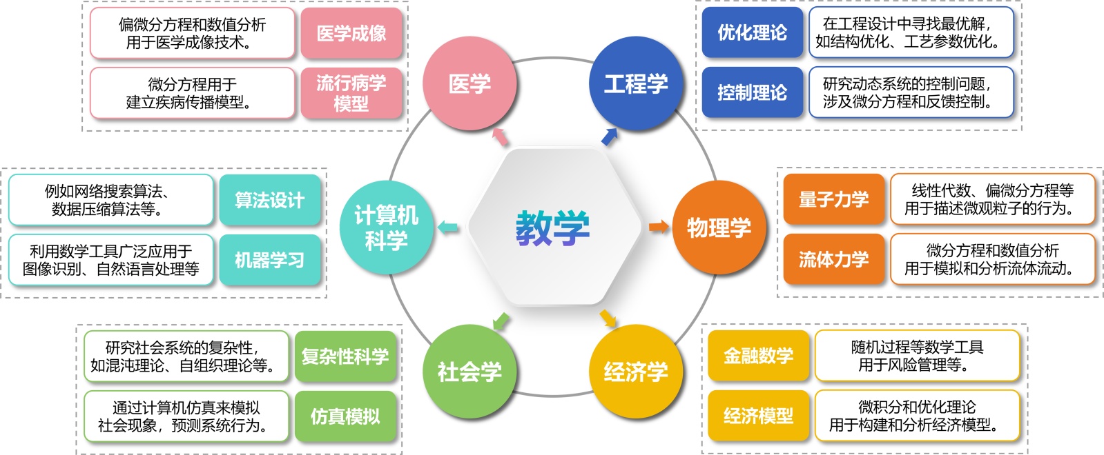 在实际科研环境中,许多前沿问题具有显著的综合性和复杂性,如机器学习模型的数学理论分析、生物医学数据的统计建模、工程系统优化中的数值计算等,都需要数学与其他学科的深度交叉。由于传统培养模式对这些交叉知识关注不足,学生在进入跨学科科研团队时往往面临“理论强但应用弱”“数学懂得多但工具不足”的困境,难以有效融入项目研究过程,甚至影响科研创新能力的发挥。因此,知识结构的单一性已经成为制约数学研究生综合能力提升和创新能力发展的重要因素。