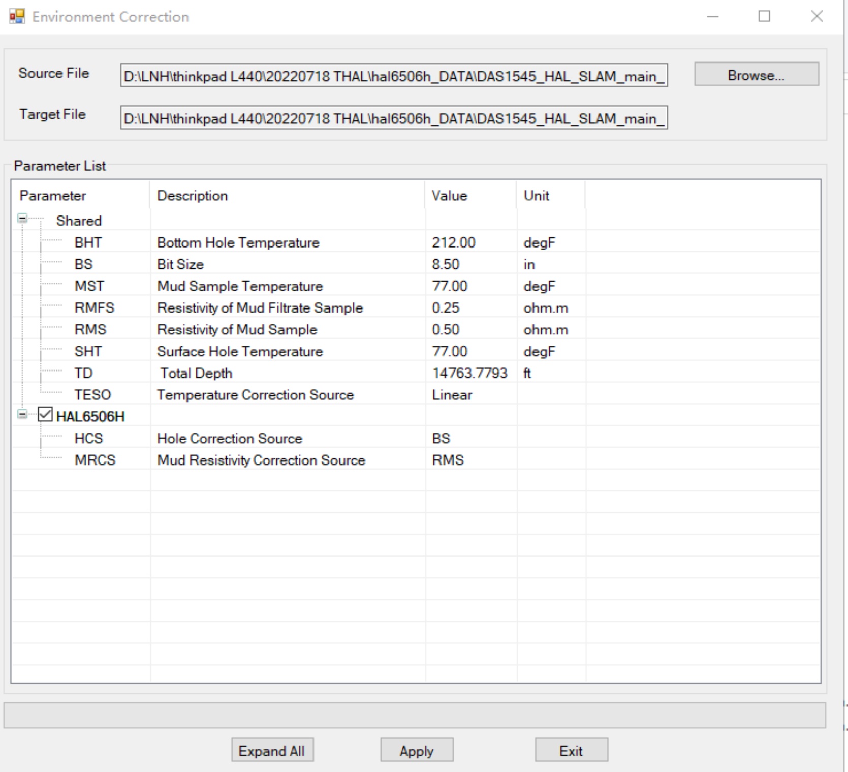 Figure 8. Example of a multi-tool environmental correction configuration file