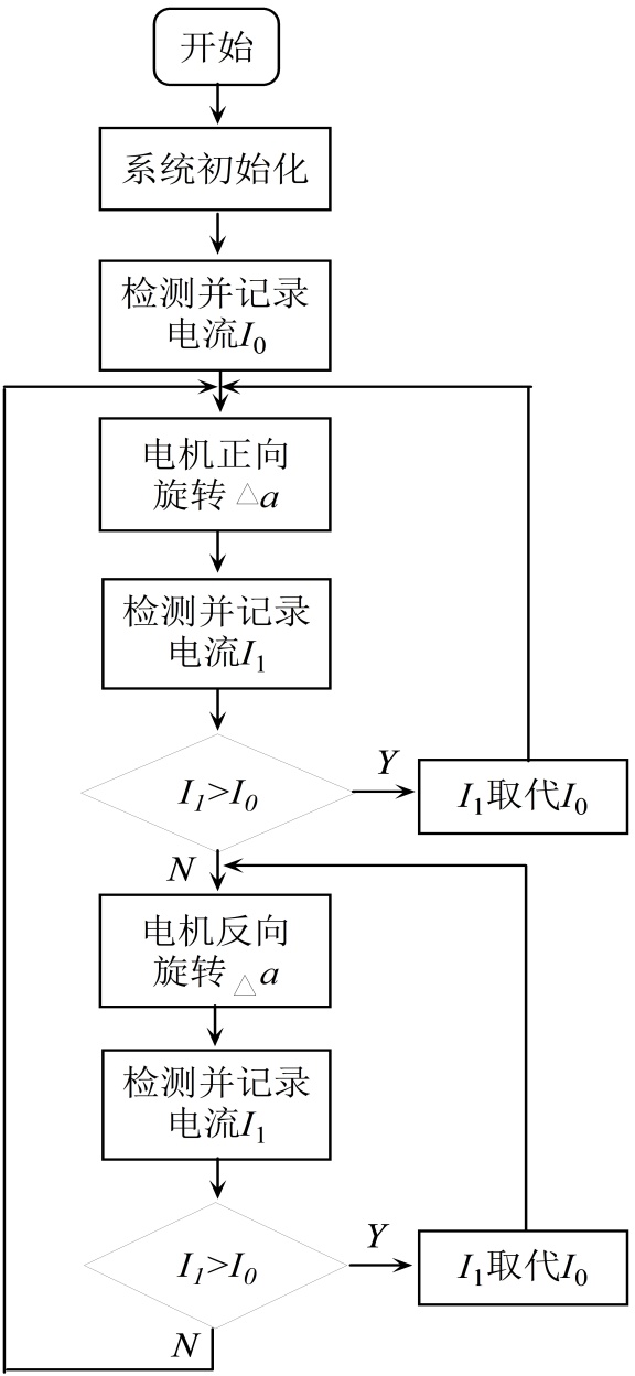 1) 系统启动,检测并记录当前电流I10,控制步进电机正向旋转角度