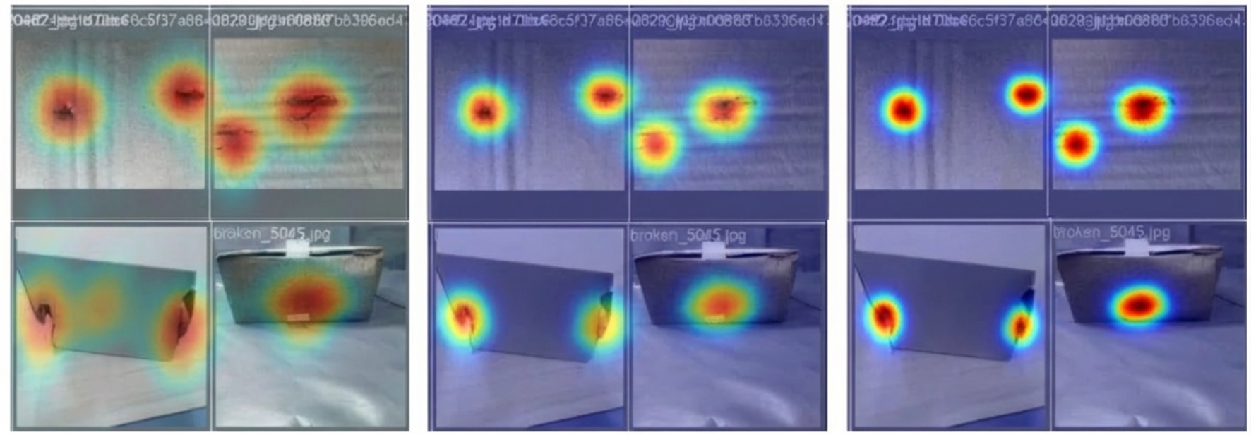 Figure 6. Grad-CAM–based visualization of corrugated carton damage detection for different model series