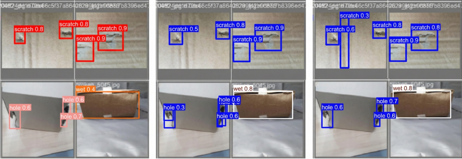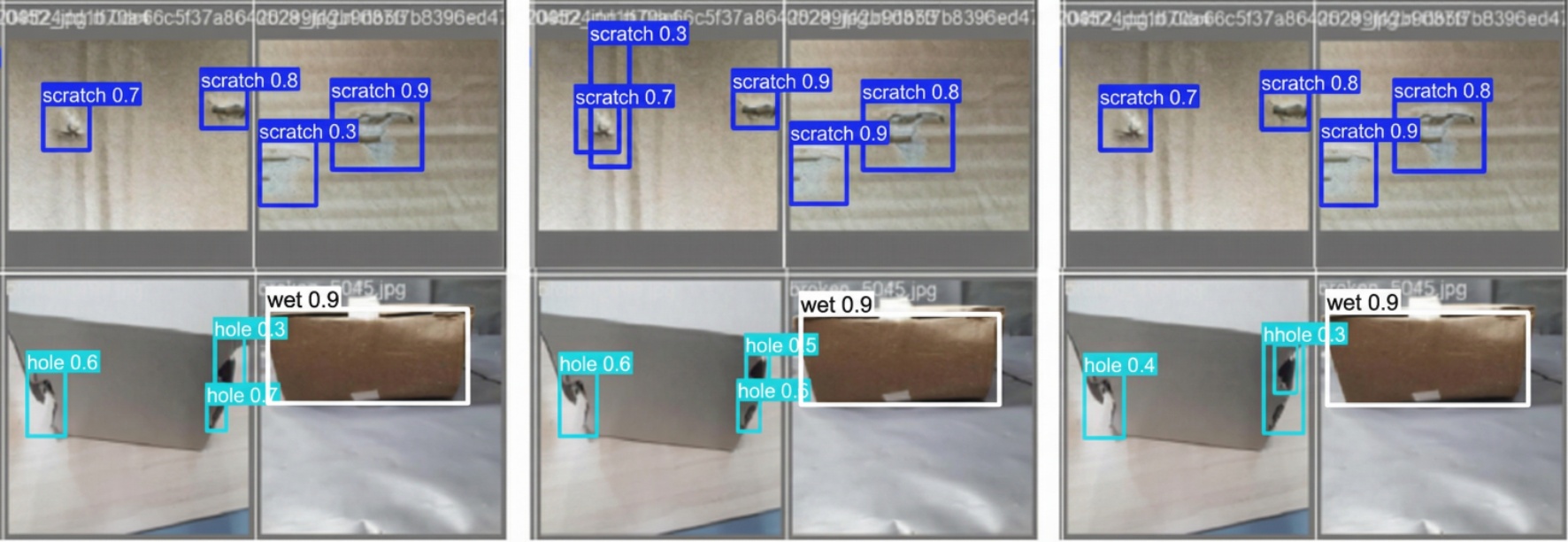 图7. 各系列模型的瓦楞纸箱损伤检测结果