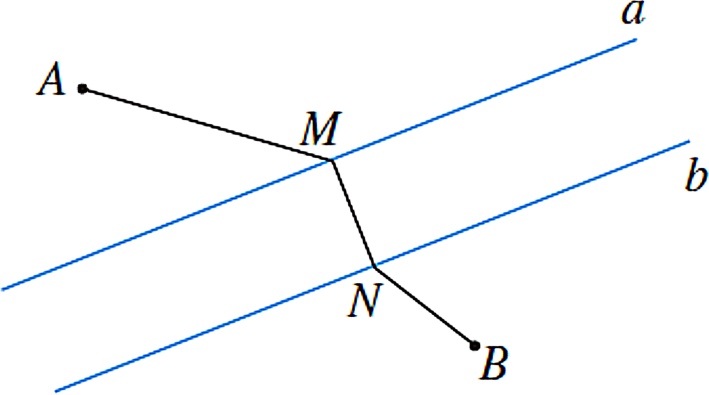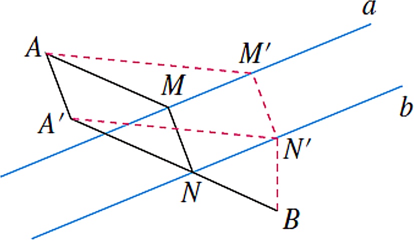 此时,A→M→N→B即为猜想的最短路径。