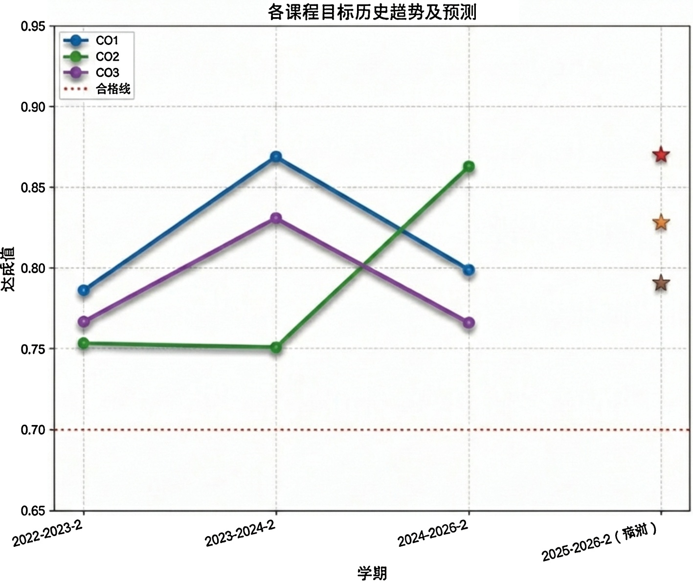 图1. 课程目标达成度历史趋势与预测(2022~2025)