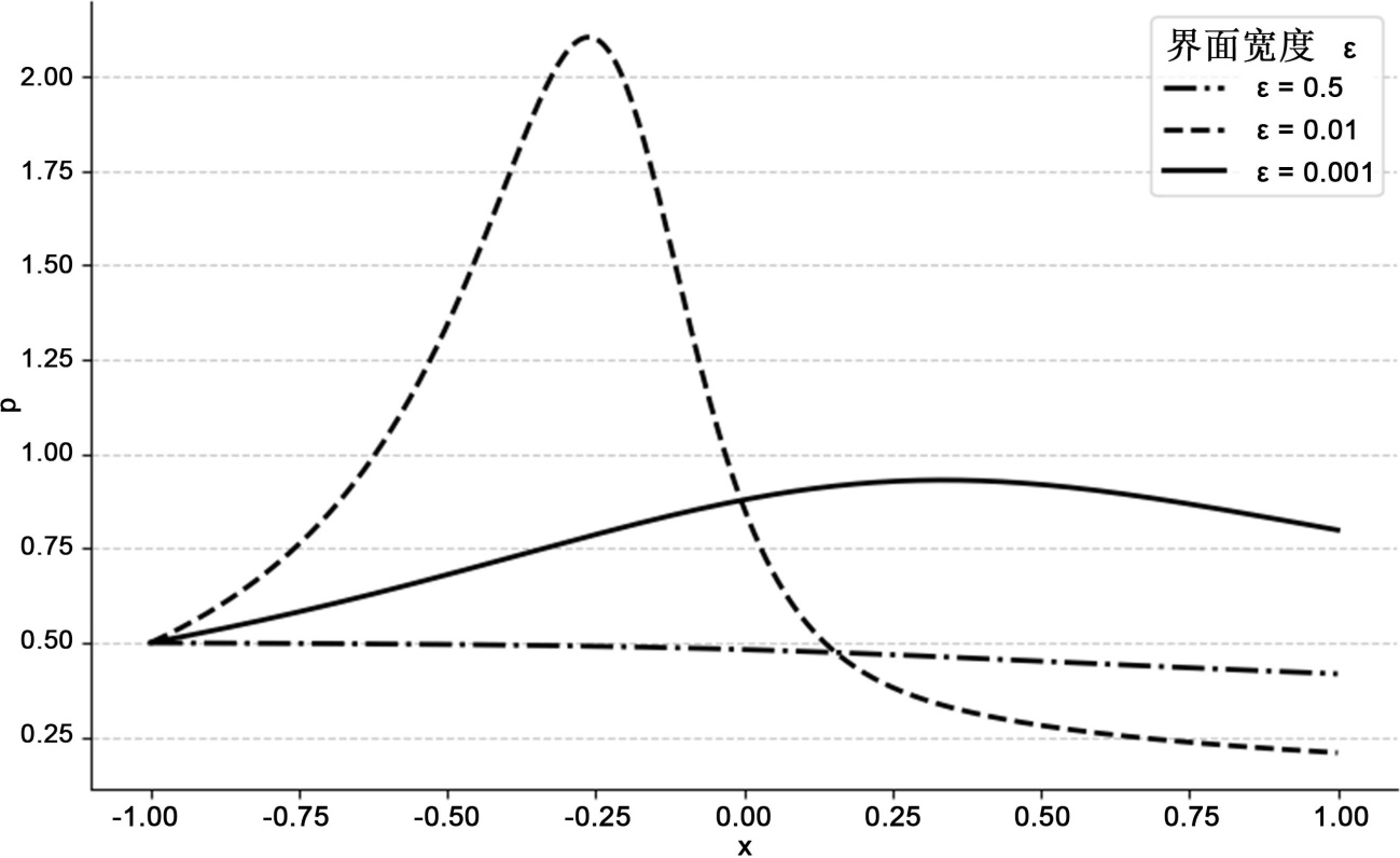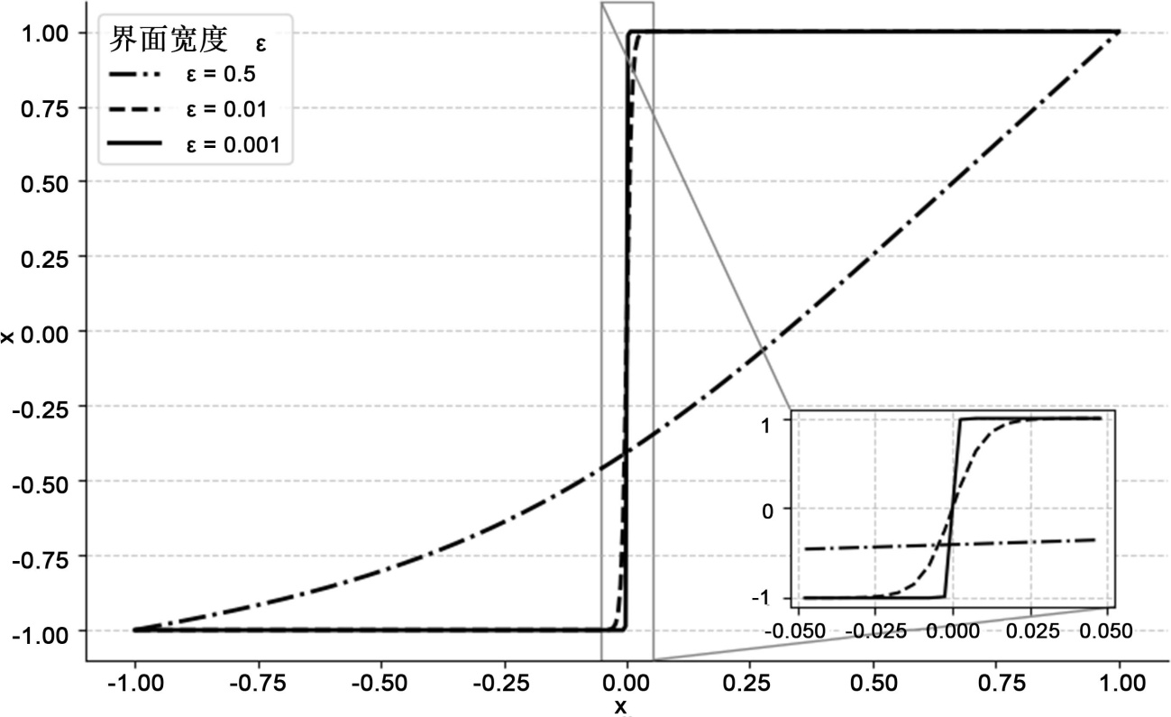 过度“平滑”相场界面梯度,削弱了tanh型过渡特征,导致与参考解偏差增大;2) 单调性惩罚项