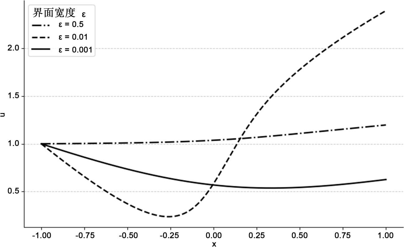时的渐近行为。基于此,构建了精确的边界值问题(BVP)解算框架,并引入物理信息神经网络(PINN)方法,实现了对界面层结构的高效、稳定求解。数值结果验证了解在锐界面极限下的收敛性与稳定性,从数学上证明了稳态解的唯一性及其渐近稳定性,同时也探讨了广义Dirichlet边界条件对系统行为的影响。