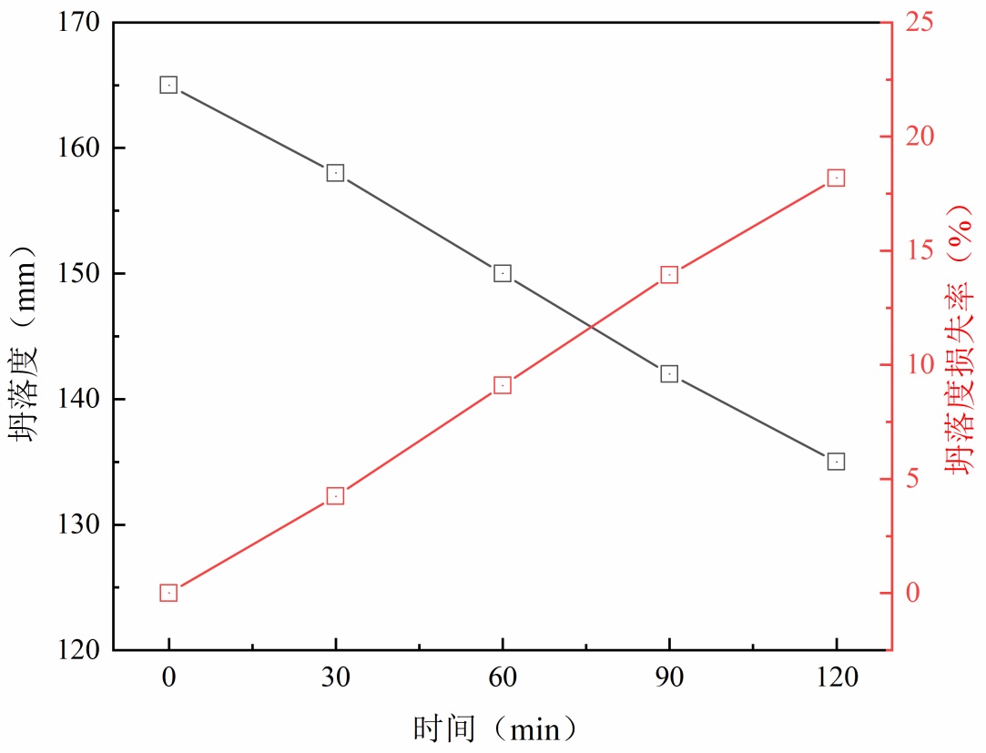 Figure 1. Test results of slump loss of C30 concrete