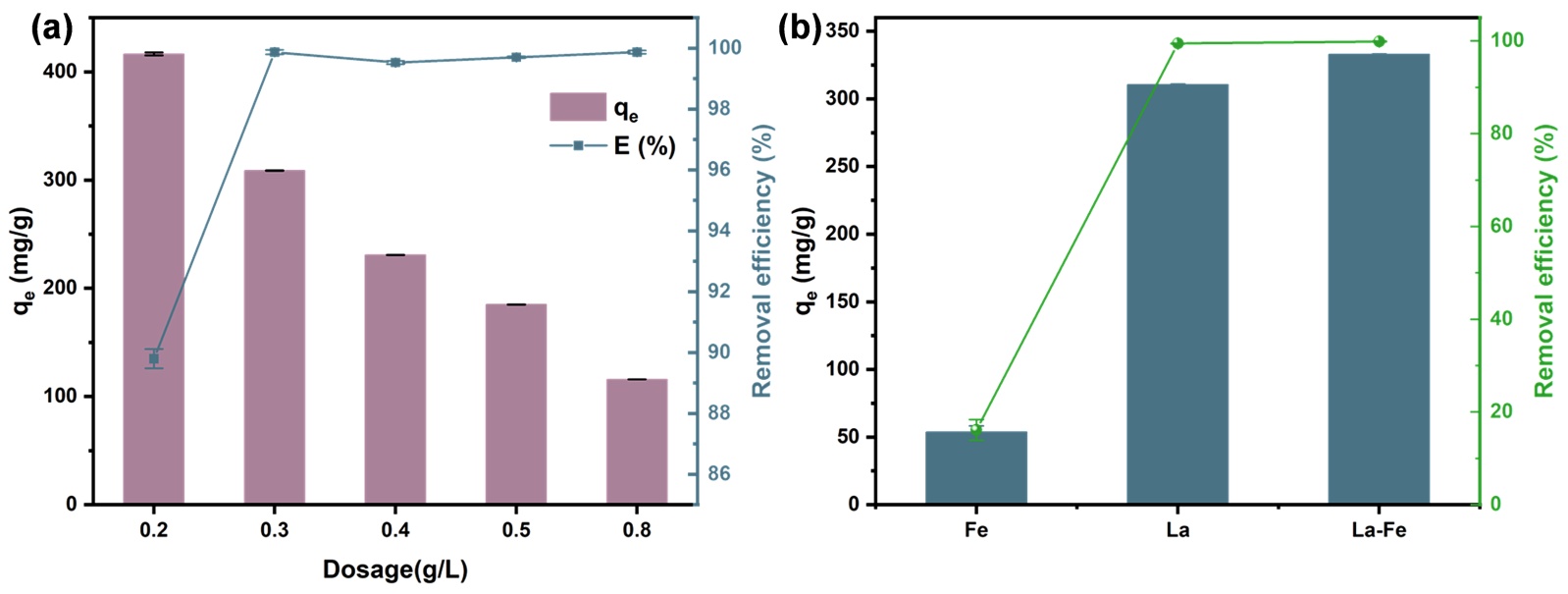 3.2. 吸附剂投加量优化与La、Fe及La-Fe材料吸附性能比较