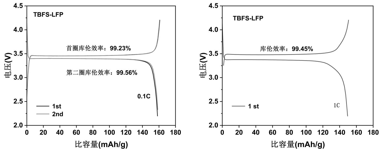 图3. TBFS-LFP在0.1 C/1 C下充放电曲线