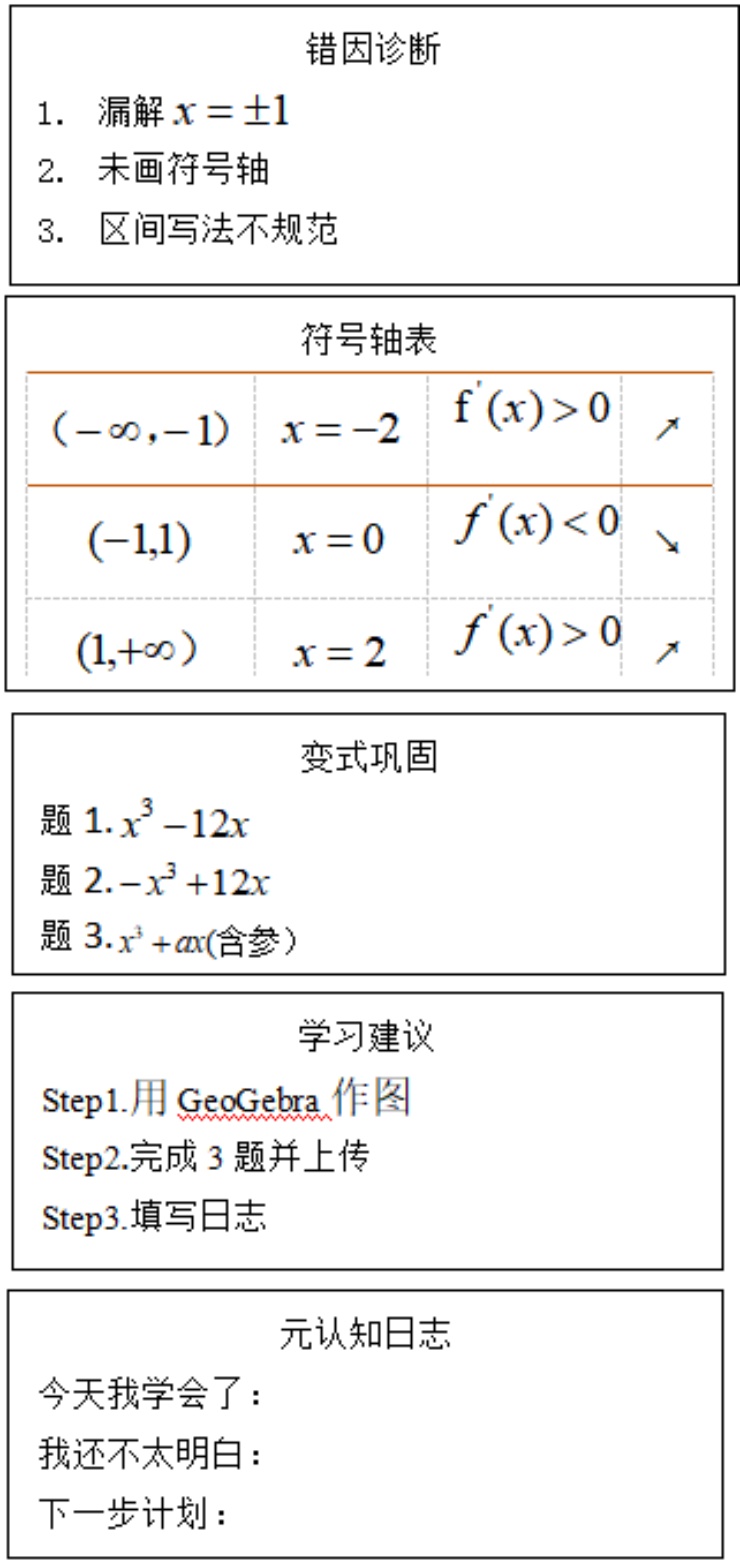 基于学生学情生成每日/每周学习计划,明确学习目标(如“本周掌握函数单调性判定方法”)与进度安排 |