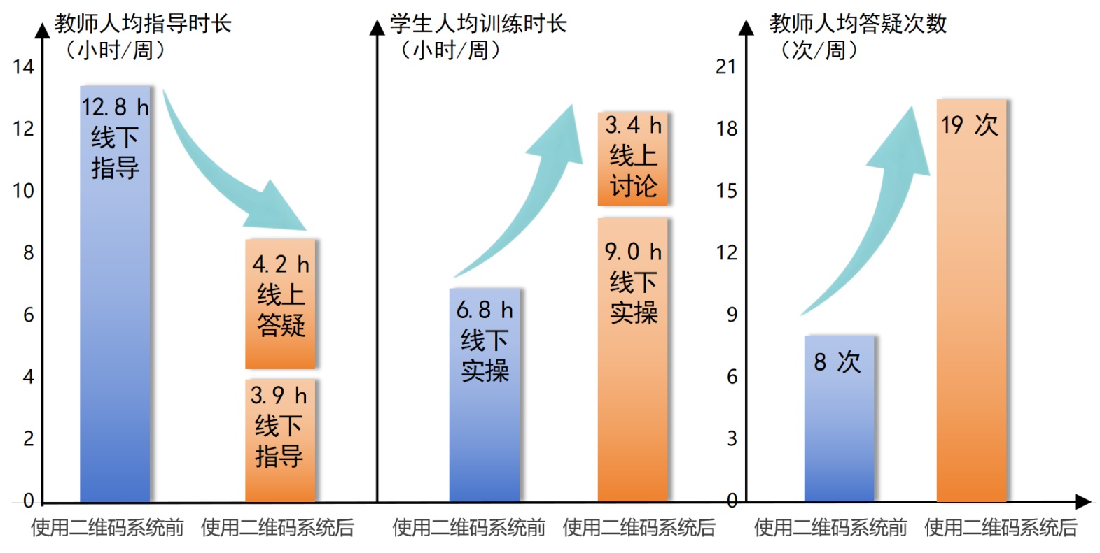 图5. 二维码系统应用前后金相大赛教与学时间分配及互动效率对比图