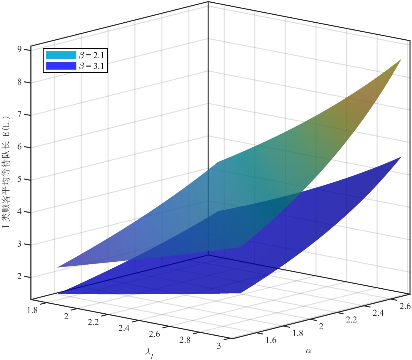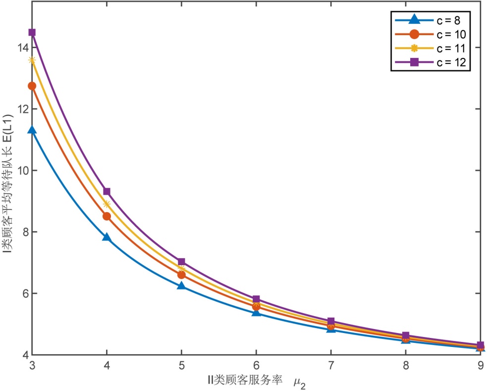 减小,这是因为新增加的服务台会优先服务系统中具有更高优先级别的Ⅱ类顾客。当