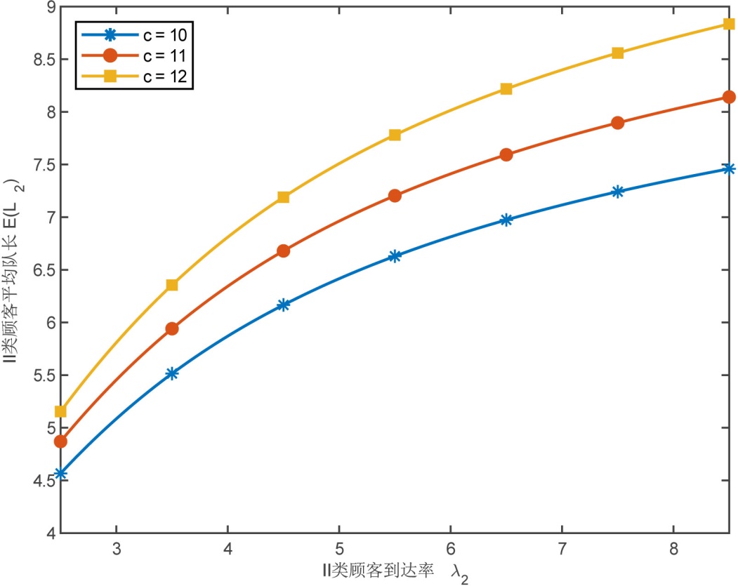 (5) 排队规则:在此排队系统中,当Ⅱ类顾客进入系统时,若有系统有空闲服务台则直接接受服务;若系统无空闲服务台且被Ⅰ类顾客使用,则Ⅱ类顾客排队至Ⅰ类顾客后等待服务。当系统中Ⅱ类顾客超过