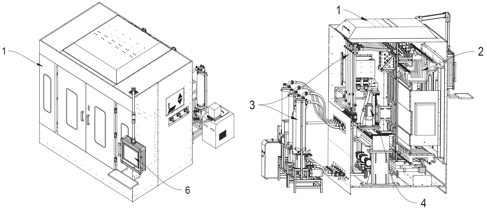 注:1柜体;2测量部分;3循环部分;4移动装置;6操作台。