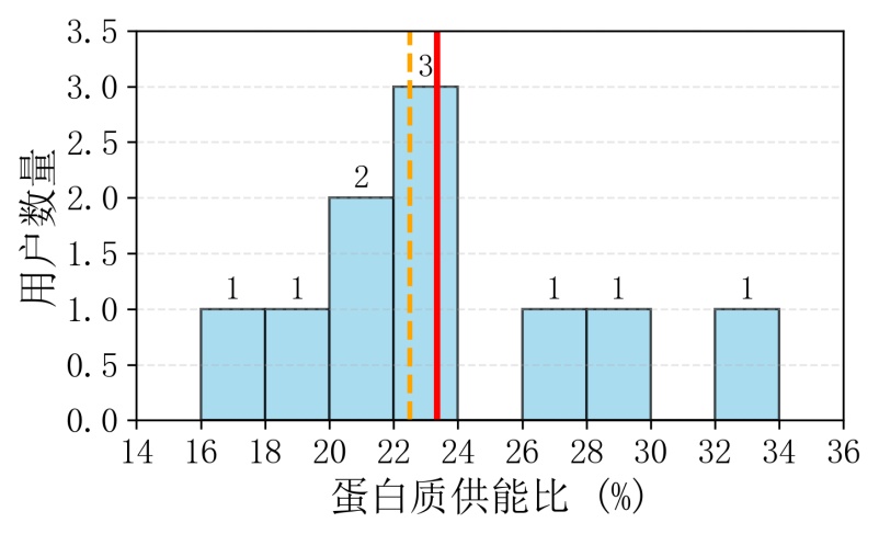 本研究基于真实场景下收集的膳食图像数据,初步描绘了一组小程序用户的膳食结构轮廓。结果显示,该群体蛋白质供能比为22.1%,高于《中国居民膳食指南(2022)》的建议范围(10%~15%)。这一现象可能与该群体膳食方案根据国家卫生健康委《成人慢性肾脏病食养指南(2024)》中透析期能量30~35 kcal/kgIBw.d,蛋白质1.0~1.2 gl/kgIBw.d指导有关,部分用户可能存在主动增加牛奶、鸡蛋等高蛋白食物摄入的行为倾向。该发现提示,在面向健康人群的膳食指导中,需注意强调蛋白质摄入的平衡,避免因过度追求高蛋白饮食而带来潜在健康风险。