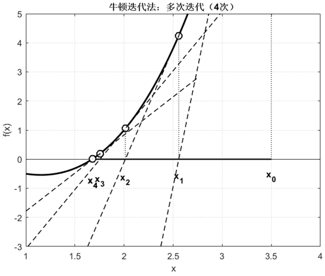 图1. 牛顿迭代法求解非线性方程根的过程
