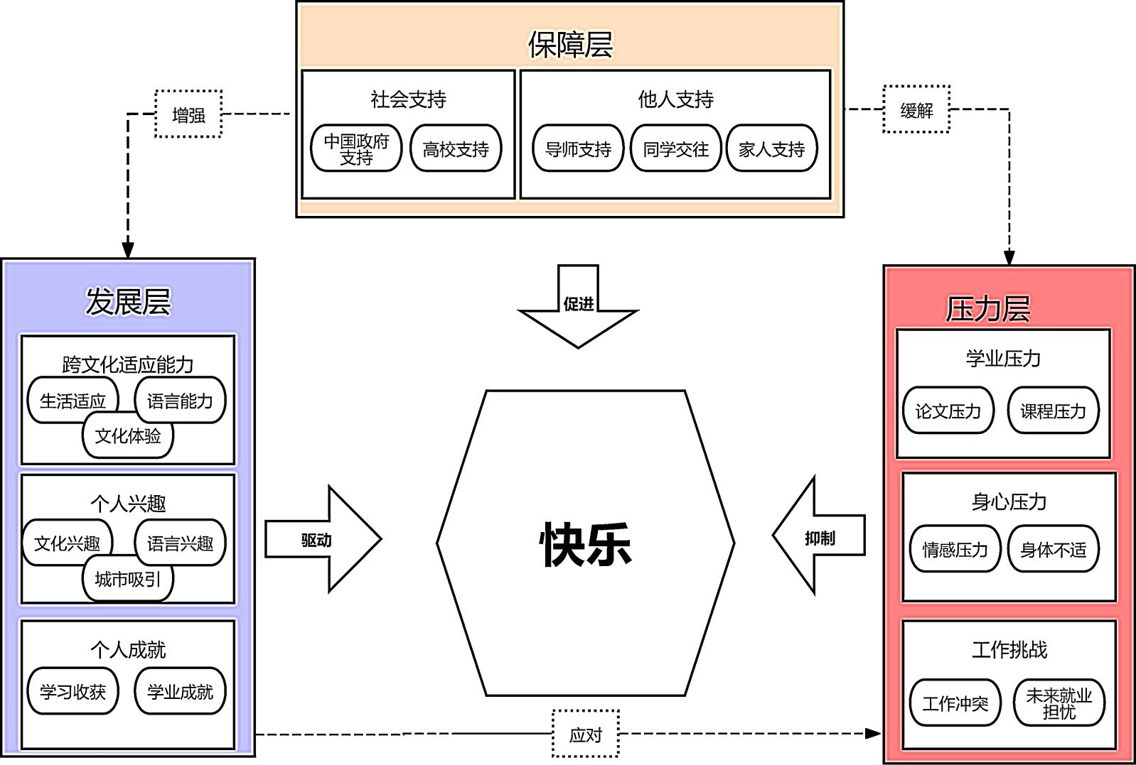 来华留学博士生的快乐体验是一个复杂而多维的过程,通过实施学业压力缓解、心理健康和社交网络构建以及自我状态调整等策略,提升来华博士生的积极情绪,这些措施的实施有助于构建一个支持性的学术环境,促进博士生的快乐情绪的发展和体验。