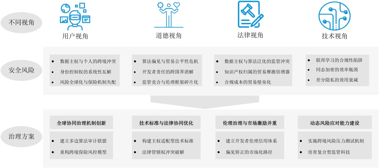 GAI在跨境贸易场景中的应用伴随着算法偏差累积、工程责任模糊以及规则不一致等治理难题。这些问题在多主体协作与自动化决策环境中相互叠加,增加了跨境数据应用的风险复杂度。