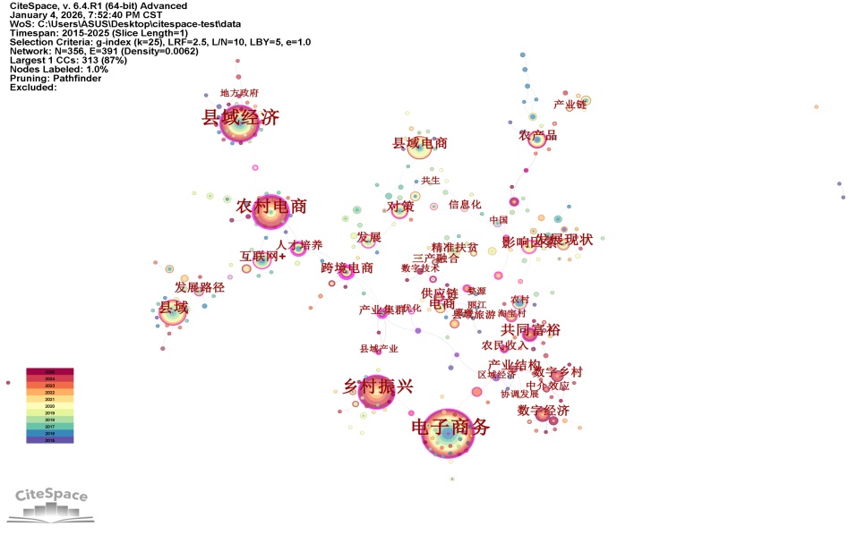 Figure 2. Evolutionary map of keyword co-occurrence in county e-commerce research, 2015~2025