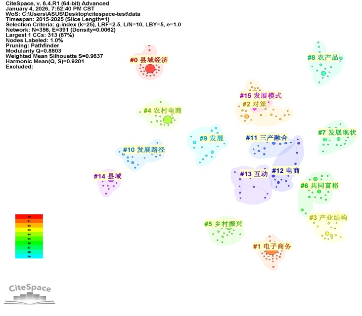 图3. 2015~2025年县域电商研究关键词聚类演化图谱