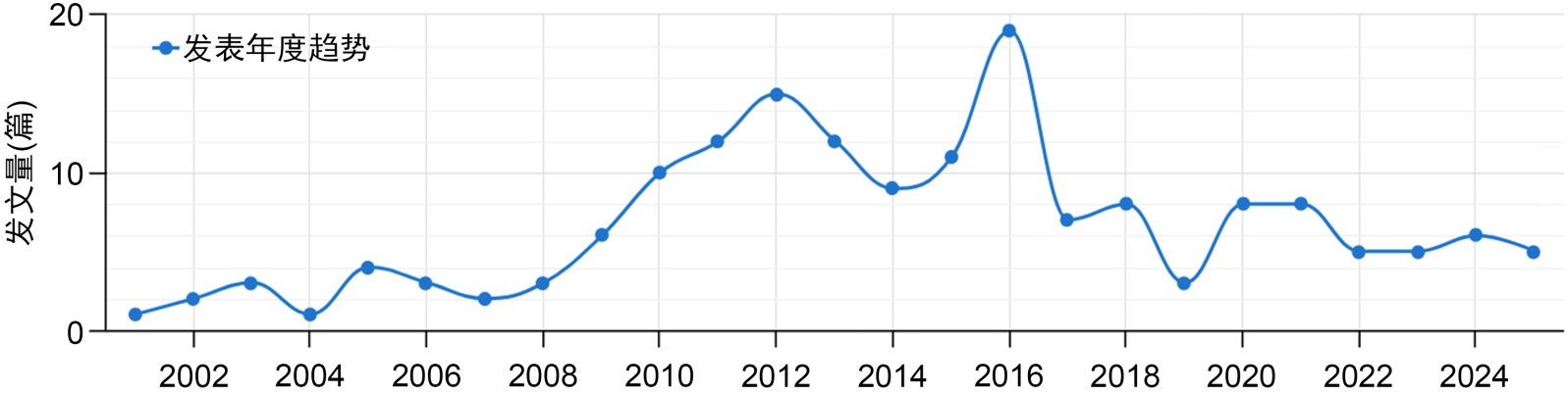 图1. 2000~2025年我国《红楼梦》发文量总体趋势