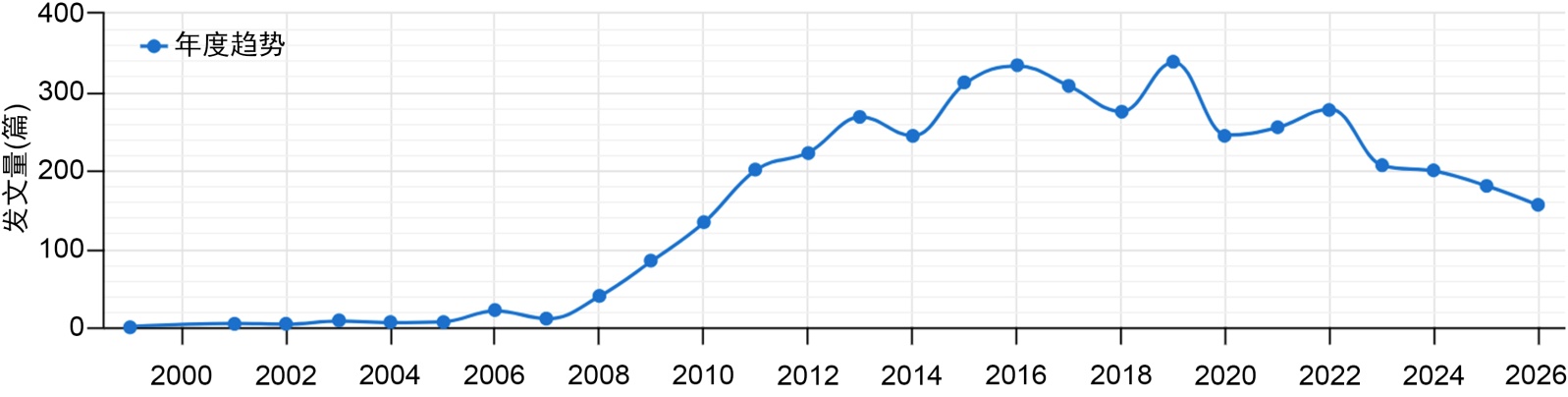 在中国知网对“网络流行语”进行检索,可以看到国内学界对网络流行语的研究总体数量较多,在2007年至2019年间基本呈上升趋势,而在2019年后缓慢下降(见图1)。