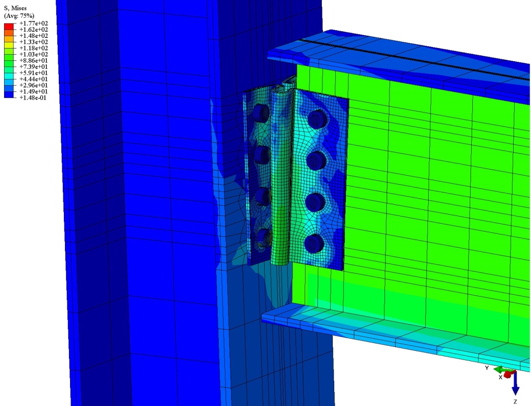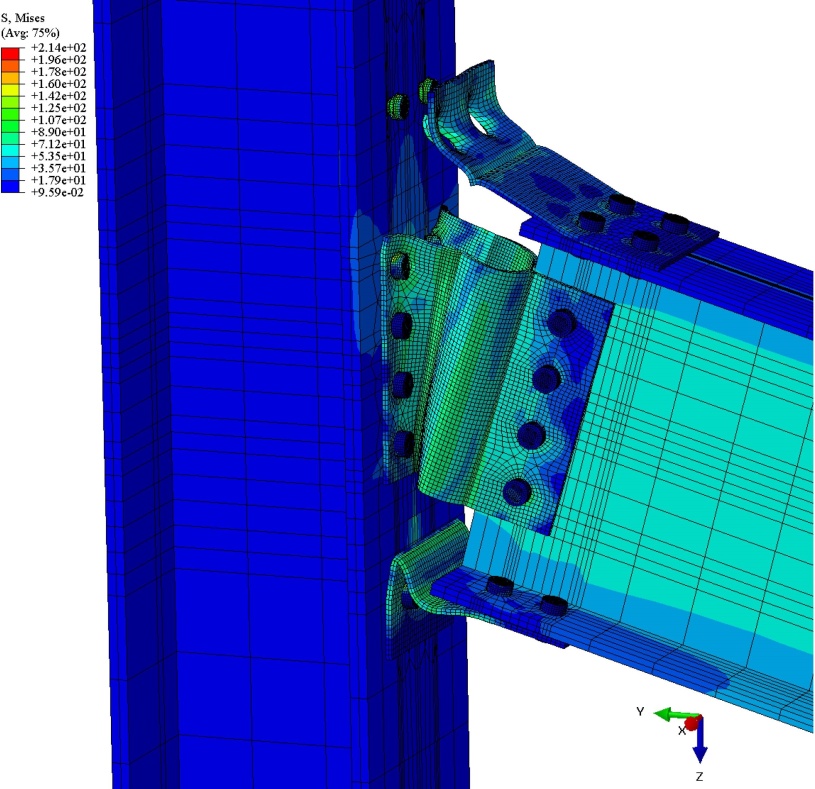 本文主要研究延性节点的抗震性能。建立了循环荷载作用下考虑延性连接的ABAQUS模型,并对两种节点进行了对比分析。需要注意的是,两套ABAQUS模型具有相同的参数,包括材料特性、梁柱尺寸、板厚、轴压比和螺栓直径。