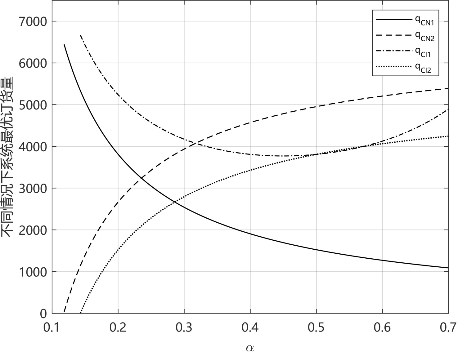 变化情况来看,不稳定的供应商1不购买保险且系统协调时,供应链整体的货物订购量随着